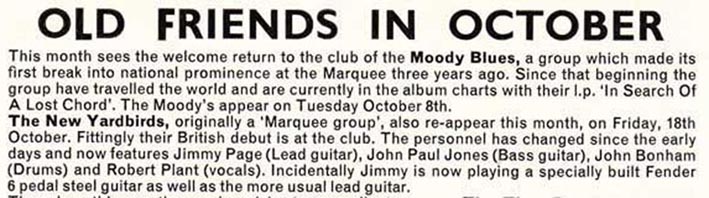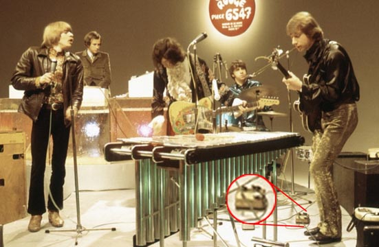 This page is periodically updated to reflect new information. Do not reprint or repost without permission. •1967 - Genesis of the Colorsound brand - At the Golden Egg restaurant on Charing Cross Road, London, Larry and Joe Macari decide to set up a full manufacturing facility to meet the current production demands for Color Sound, and to expand into a full line of effects pedals. They come up with the the idea that each effect pedal will be housed in a different, brightly coloured enclosure. This new line will be branded Colorsound. They make plans to become the largest effects company on the world. •1967 - Gary Hurst is still running his "Gary Hurst Electronics" business from the back of the new Musical Exchange shop at 100 Charing Cross road. He breaks his leg playing football and takes a few months off work to recover. According to Gary, upon returning he finds that Macaris had completely taken over the Tone Bender line, leaving Gary out of control. Doug McDonald has taken more of a stronger role in Gary's absence. •1967 - Creation of JEN Elettronics. Thomas Organ was making the first Cry Baby Wah Wah pedals in California, but Joe Benaron, president of Thomas Organ, wanted to move production to Italy to reduce costs. Joe approached the manufacturing company Eko in Italy about making the Wah. Eko declined, but Eko's manufacturing manager, Ennio Uncini, wanted to do it. Ennio and Joe then formed their own company in 1967 called JEN (named from the J in Joe and EN from Ennio). Ennio supervised operations in Italy, where Jen handled the Cry Baby Wah production for a while in 1968, as well as making the Vox Wah Wah's and other Vox pedals. Thomas Organ distributed the pedals in the USA, and JEI distributed them for the European markets. Jen later marketed a line of pedals under their own brand beginning in 1968. •1967 April - Jimmy Page is seen using his gold Tone Bender during the Yardbirds April 30th 1967 performanc in Chaville, France.